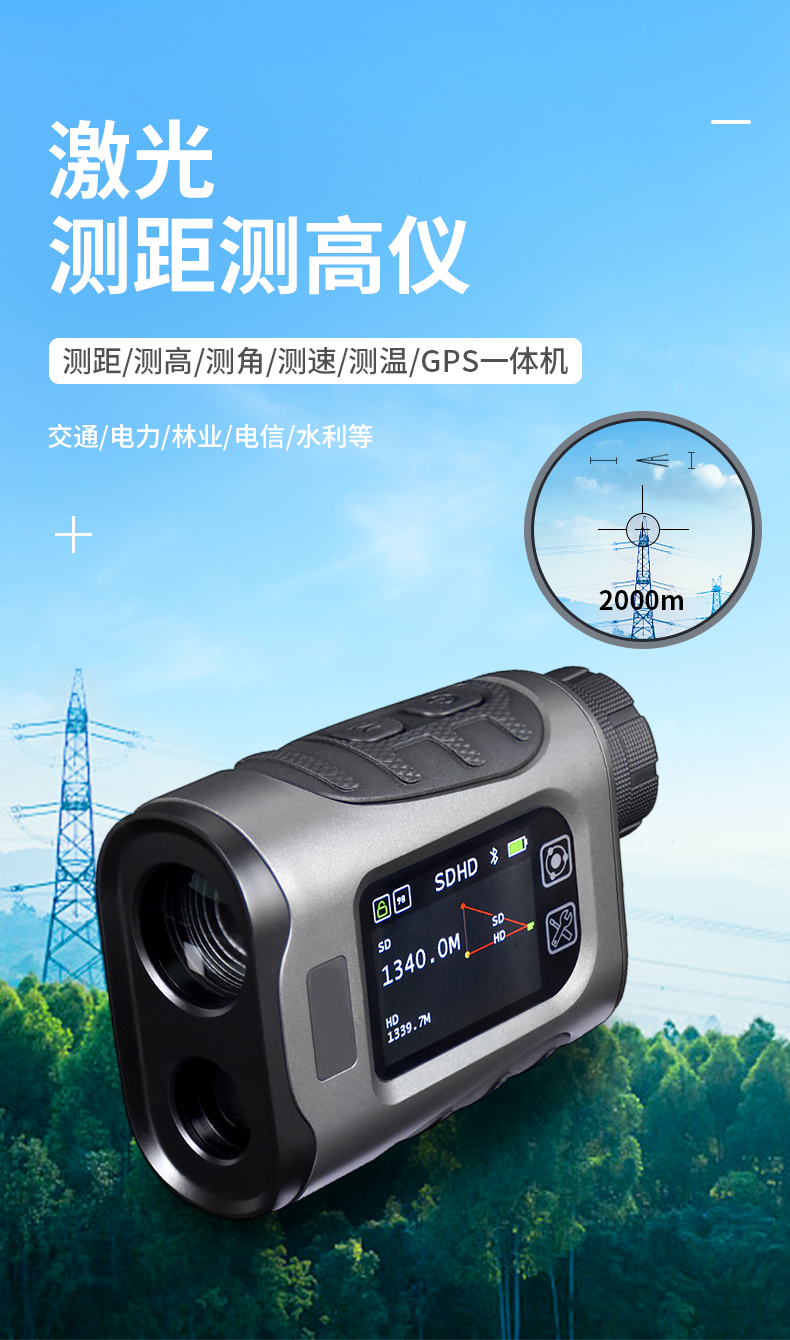 【產品簡介】0~2000米,觸摸屏\存儲\藍牙APP\測距\測高\測角\測速\溫度顯示