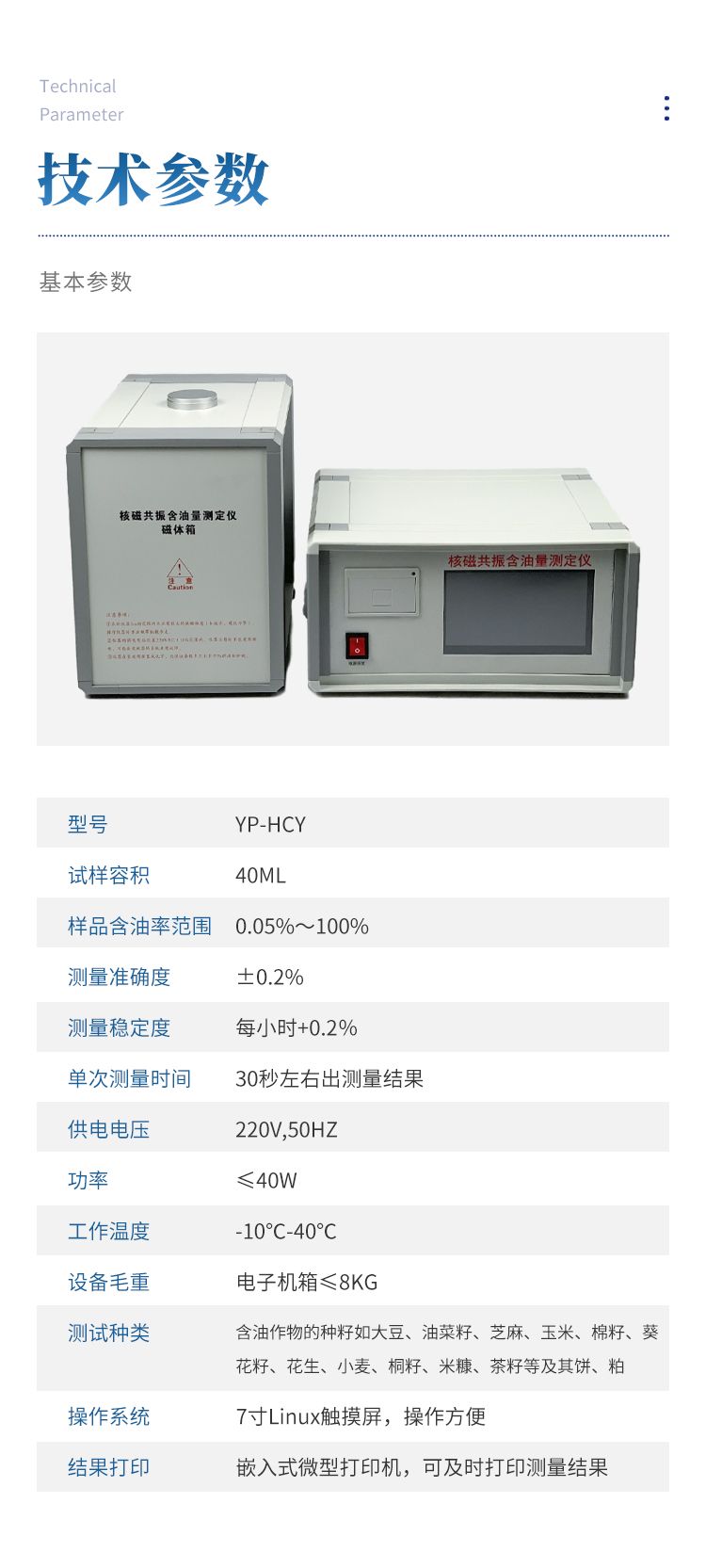 8、符合GB/T 15690-2008,《植物含油  含油量測定 連續(xù)波低分辨率核磁共振測定法(快速法)》的要求;