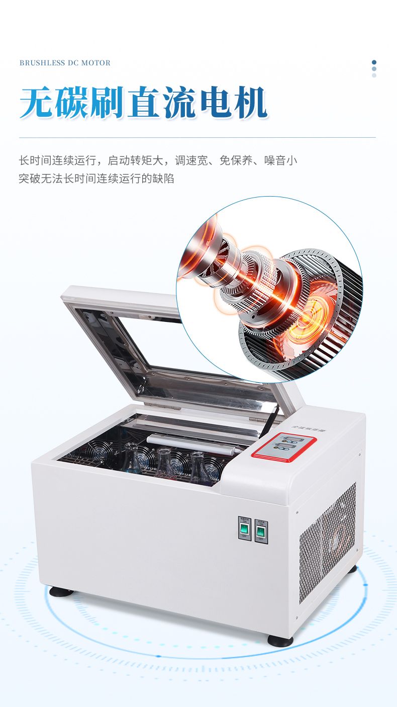 臺(tái)式恒溫小型振蕩器專為需求用地面積小的用戶設(shè)計(jì)。具有小外形體積,大工作空間的特性??梢苑胖迷趫?jiān)固的臺(tái)面或地面。該型搖床裝備PID控溫系統(tǒng)和無(wú)刷直流電機(jī)控制系統(tǒng),可滿足對(duì)溫度和速度有較高要求的用戶需求。