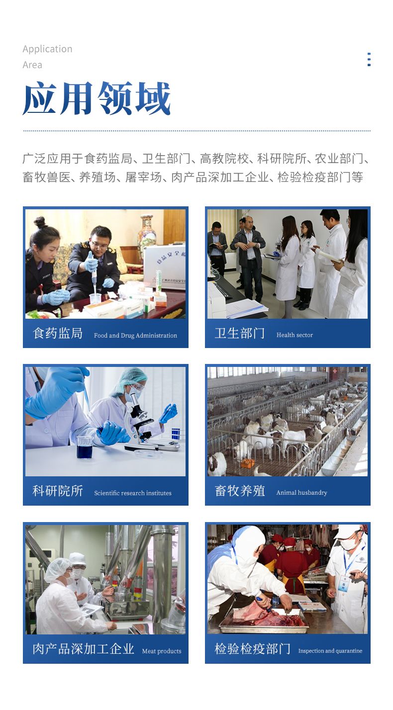 該動(dòng)物疫病診斷儀適用于豬、雞、鴨、羊、牛、牛奶等畜禽產(chǎn)品中動(dòng)物疫病、獸藥殘留、有毒有害物質(zhì)和抗生素殘留的檢測(cè)可廣泛應(yīng)用于食藥監(jiān)局、衛(wèi)生部門、高教院校、科研院所、農(nóng)業(yè)部門、畜牧獸醫(yī)、養(yǎng)殖場(chǎng)、屠宰場(chǎng)、食品肉產(chǎn)品深加工企業(yè)、檢驗(yàn)檢疫部門等單位使用。