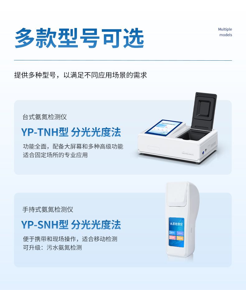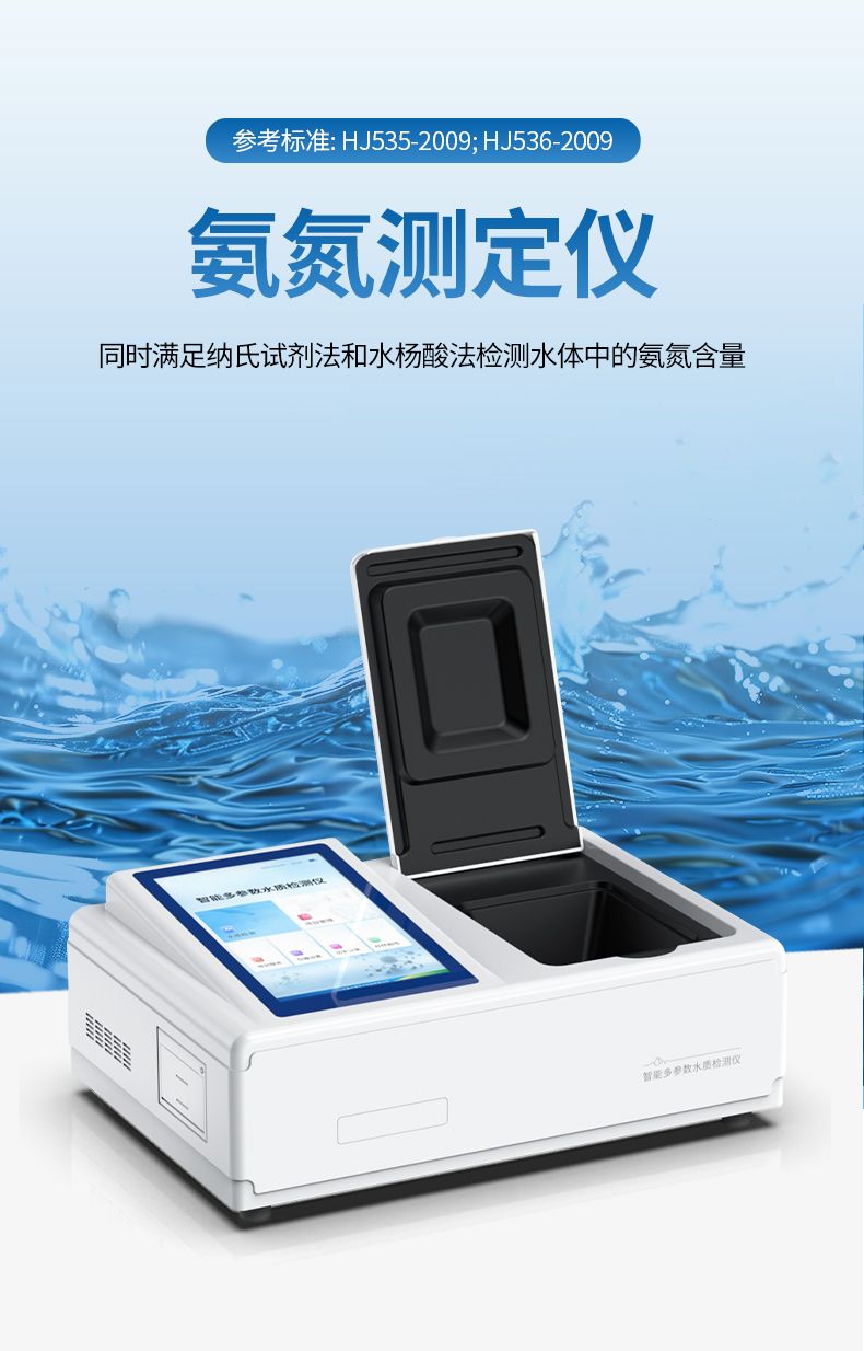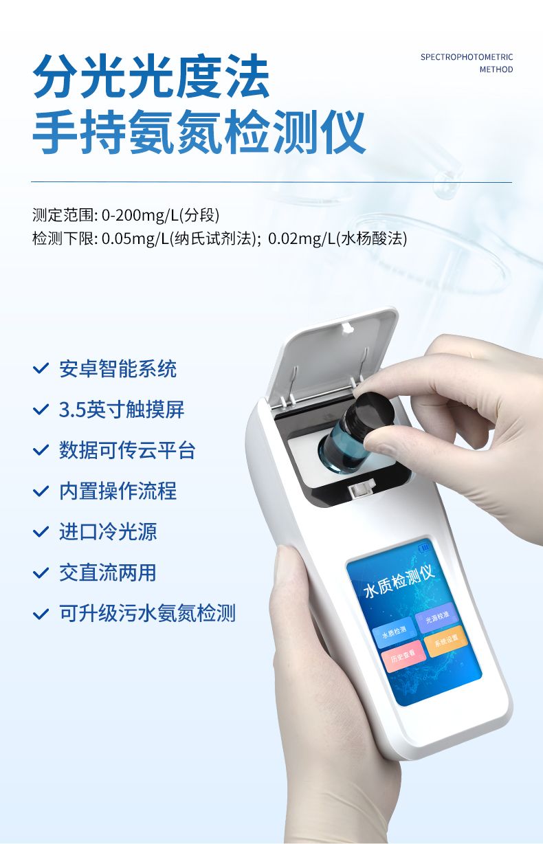 智能氨氮快速檢測儀主要檢測水體中的氨氮含量;設備內置多個光源,對應不同的檢測波長,可同時滿足納氏試劑法和水楊酸法檢測水體中的氨氮含量。納氏試劑法參考環境標準HJ 535-2009 《水質 氨氮的測定 納氏試劑分光光度法》,水楊酸法參考環境標準HJ 536-2009 《水質 氨氮的測定 水楊酸分光光度法》。本儀器兼具智能數據分析功能,圖表、列表顯示數據,分析一目了然;高清晰度彩色液晶觸摸顯示屏,Android智能操作系統,中文顯示界面,中英文鍵盤,人性化操作,使用更簡單。