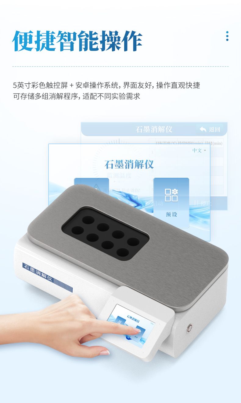 本石墨消解儀是替代傳統(tǒng)電熱板、電熱爐的理想選擇,同時儀器采用經(jīng)典的30 mm孔徑設(shè)計,完美兼容市場主流的50 mL、100 mL消解管,是實驗室值得信賴的得力助手。